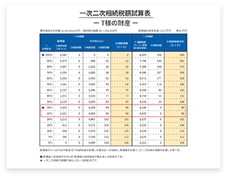 JIDAIOでは、配偶者の方に相続がおきた場合(二次相続と言います)にお子様世代の納税額も考えて最適な分割案を、分かりやすい資料でご提案致します。